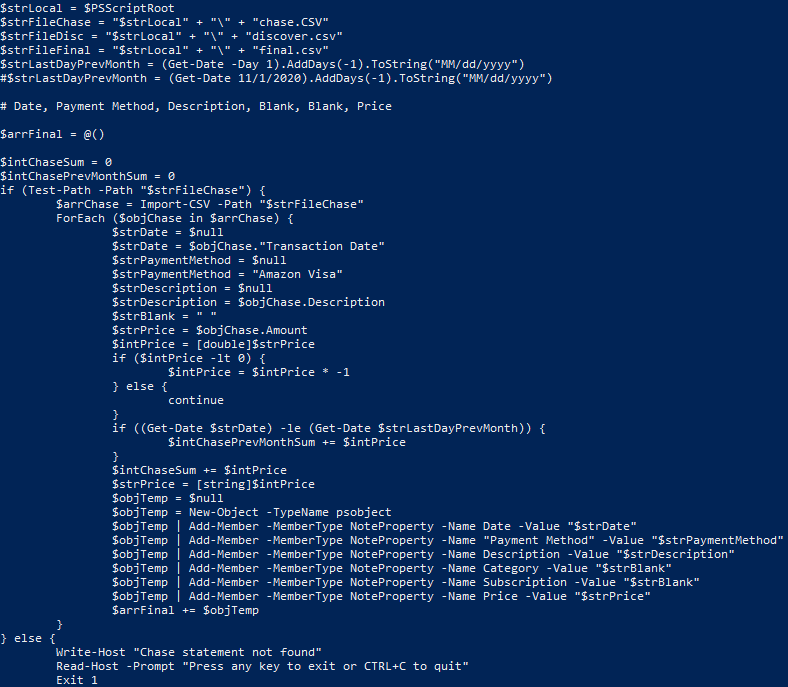 I stopped looking at repetitive tasks as boring. Instead, I looked at them as a problem scripting could solve. Every week I load all of my credit card and banking statements into a monthly spreadsheet. It is so I can see how much I spent vs. how much I earned. It takes a while to manually copy that information. Now, I use PowerShell. It loads up csv files from my statements, and spits it out into whatever format I tell it to use.