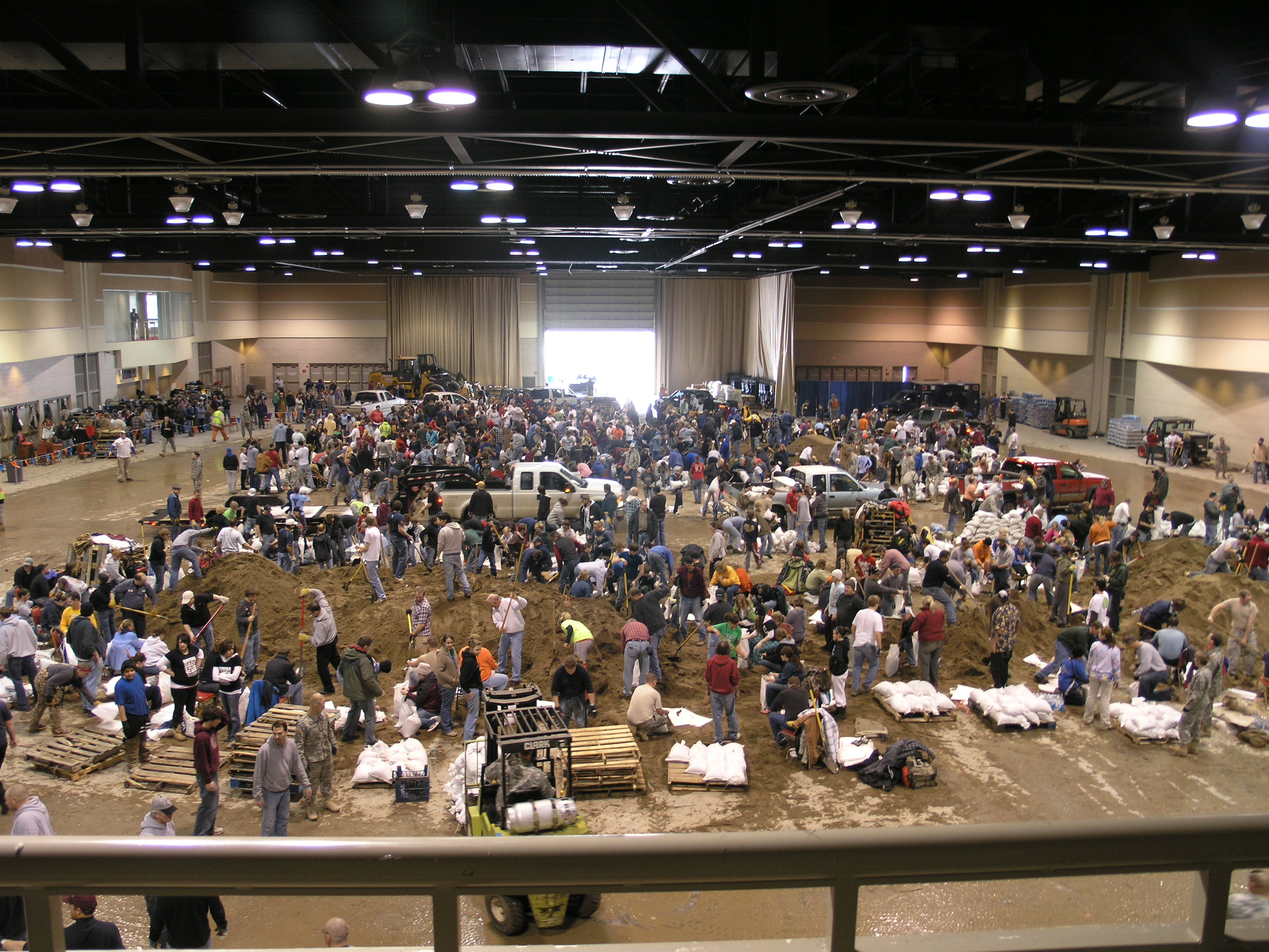 Hello. It's been an interesting week. Floods, thunderstorm, blizzards,and C-4 here in North Dakota. What's awesome is how many volunteers there were to help with sandbagging. Here's a picture of Sandbag Central, at the Bismarck Civic Center. In 1997, the Red River flooded, but I don't know the last time the Missouri River flooded. Ice jams caused the Missouri River to flood, and they decided to stop all flow from Garrison Dam, which has never been done before since its creation. Then the Blizzards. Bismarck got hit by that too, but Dickenson and the surrounding area got the most snow from that. Over 15 inches. Today Bismarck is getting even more snow. No school for me that means. That's how bad it is again. They don't just cancel school because of weather very often. We're not wimps up here :). In fact last Tuesday we had a Blizzard, and Bismarck was pretty much the only ones to not cancel school right away. At 1:00, my college let out and so did my mom's school (she's a teacher at a Christian school). They should have canceled school. I was suprised at how many people showed up for classes though. Over half of my class was there, which is almost more than how many usually show up.