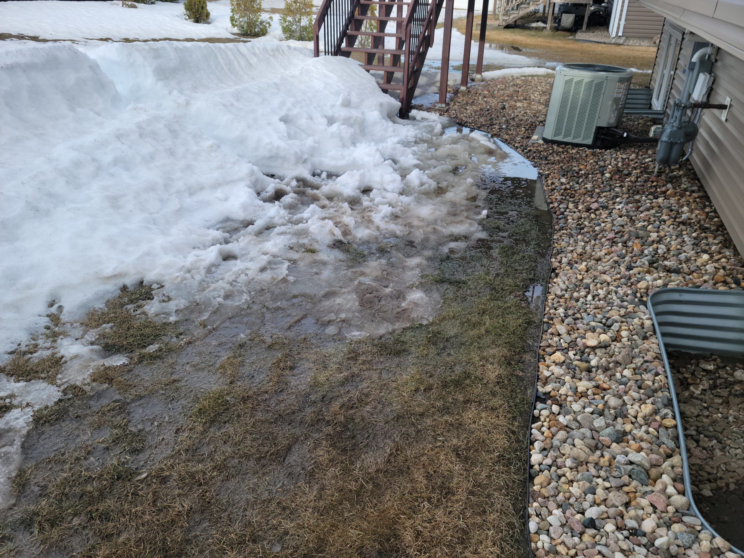 I was thrust into water management. The water from the melting snow in my backyard started flowing toward my house. I had a little pond at the base of my deck. My backyard sounded like a small creek with water trickling into my window wells. I could step onto a snow drift from my second story deck, which did not help with the water situation. As the snow melted, I shoveled the snow drift to dry spots in my yard. Luckily, I have a sump well, and the water entered my drainage tile. I am doubly thankful my sump pump did its job this spring, but it was running constantly. The snow has since melted, and my property is completely dry.